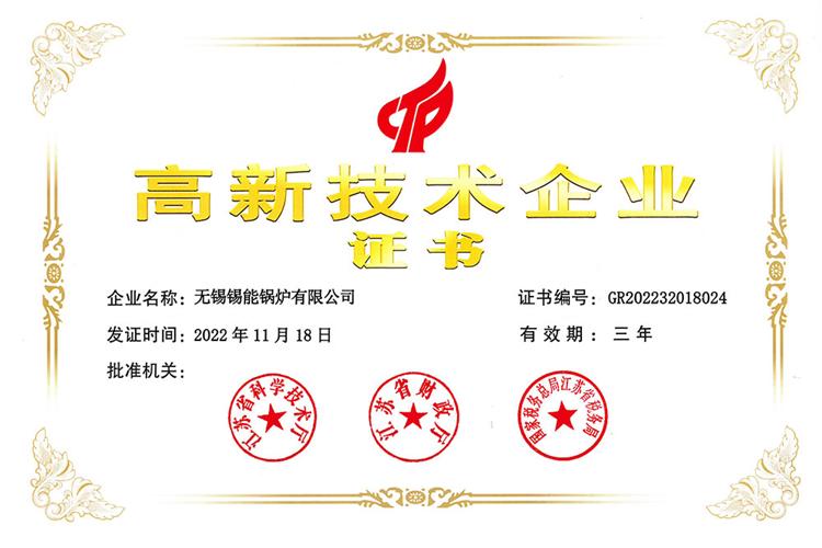 On February 23, 2023, the Office of the National Leading Group for the Recognition and Management of High tech Enterprises announced the "Supplementary Filing List of High tech Enterprises Recognized by Jiangsu Provincial Accreditation Institutions in 2022". Wuxi Xineng Boiler Co., Ltd. has successfully passed the review and recognition of "National High tech Enterprise".