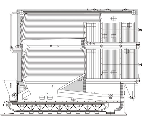 • According to the feature of the fuel, this series of combustion equipment adopt the structural of dust accumulation prevention which could reduce dust accumulation in boilers and make it convenient to clean up the dust. For the purpose of reducing accumulation ofthe dust and improving the heating power of the combustion equipment, the boiler convection heat transfer section adopts high and low staggered row, large spacing and arrangement of soot blowing device ash cleaning device and other measures.