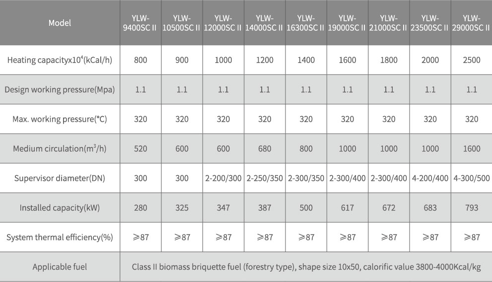 Rated thermal power: 0.7MW - 25MW (60xl04Cal/hr - 2000xl04Cal/hr)