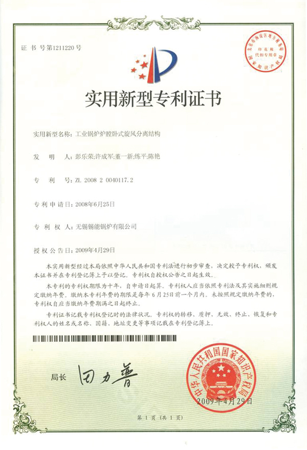 导热油炉 > 资质荣誉 > 发明专利证书 发明专利证书